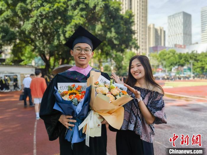 6月27日,林建全與妹妹林婉詠在廣西科技大學合影留念。胡建芳 攝