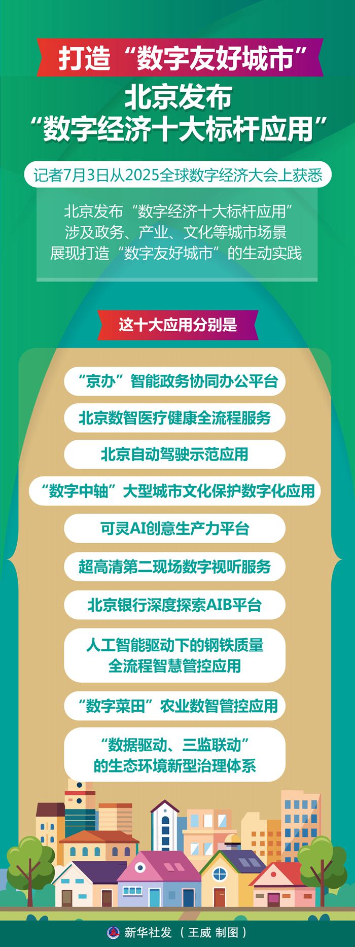 記者3日從2025全球數(shù)字經(jīng)濟(jì)大會(huì)上獲悉,北京發(fā)布“數(shù)字經(jīng)濟(jì)十大標(biāo)桿應(yīng)用”,涉及政務(wù)、產(chǎn)業(yè)、文化等城市場(chǎng)景,展現(xiàn)打造“數(shù)字友好城市”的生動(dòng)實(shí)踐。