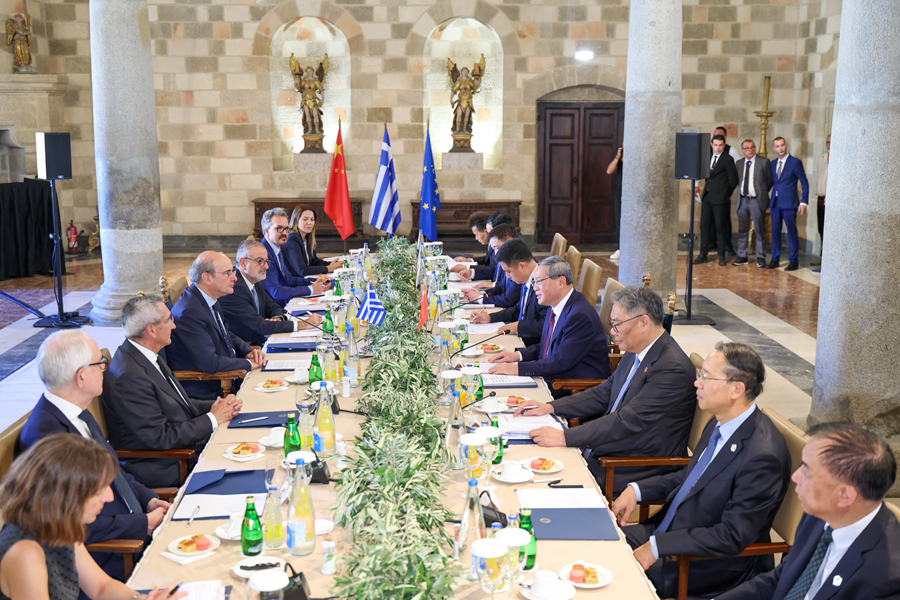 李強指出,中方愿同希方拉緊合作紐帶,更好發(fā)揮互補優(yōu)勢,高質(zhì)量推進比雷埃夫斯港總規(guī)劃落地,推動兩國貿(mào)易更加優(yōu)化平衡發(fā)展,加強在清潔能源、輸變電、人工智能等領(lǐng)域合作,培育更多經(jīng)濟新增長點。中方支持和鼓勵更多有實力的中國企業(yè)根據(jù)市場原則,積極推進對希臘投資。雙方要加強文明互鑒,密切旅游等人文交流,增進兩國人民友好。中歐之間有著廣泛的共同利益。當前全球單邊主義、保護主義愈演愈烈,中歐應(yīng)共同發(fā)出倡導(dǎo)多邊主義和自由貿(mào)易的積極聲音,攜手維護經(jīng)濟全球化和國際經(jīng)貿(mào)秩序。希望希臘繼續(xù)為推進中歐關(guān)系發(fā)展發(fā)揮建設(shè)性作用。