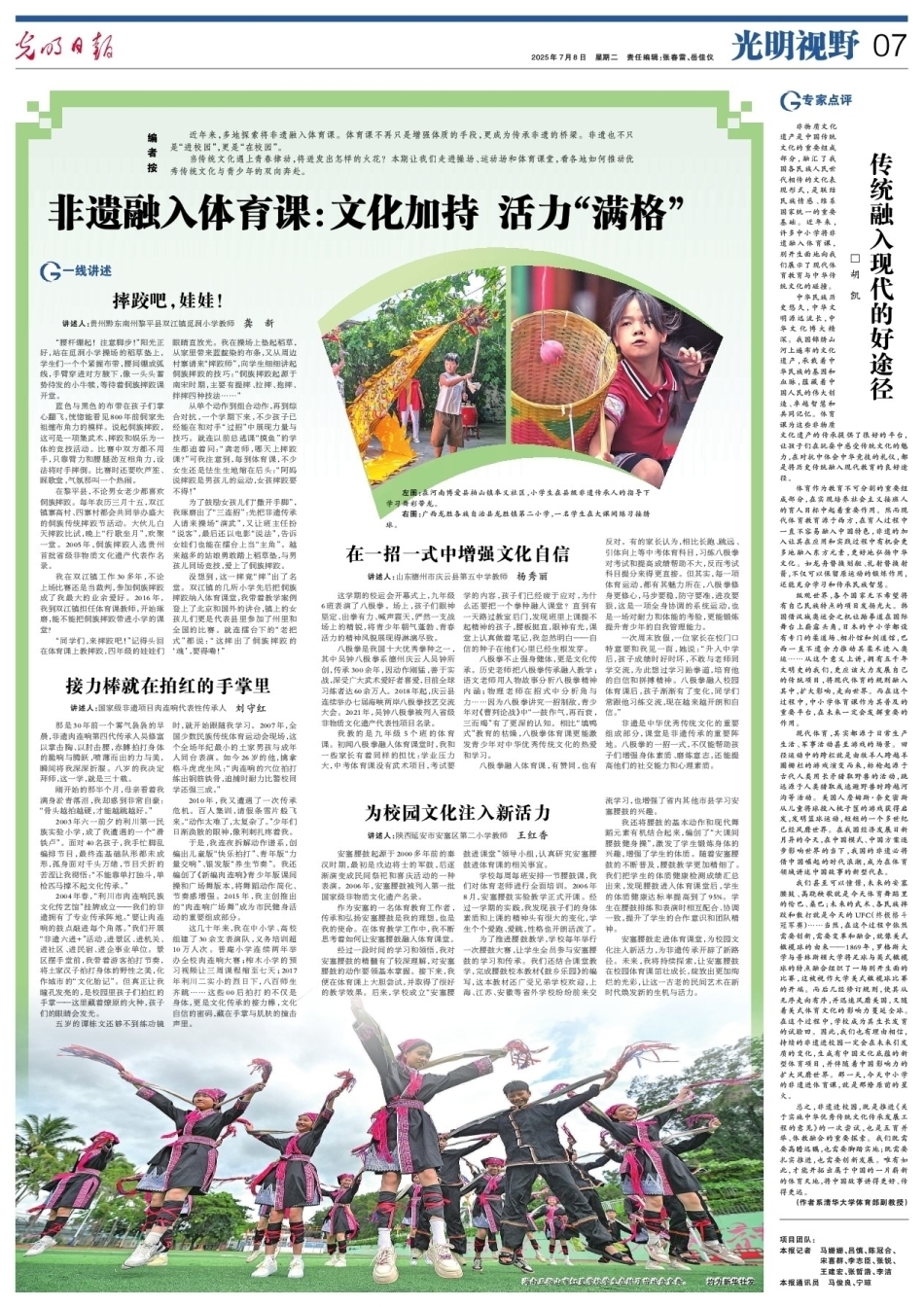 近年來,多地探索將非遺融入體育課。體育課不再只是增強體質(zhì)的手段,更成為傳承非遺的橋梁。非遺也不只是“進校園”,更是“在校園”。