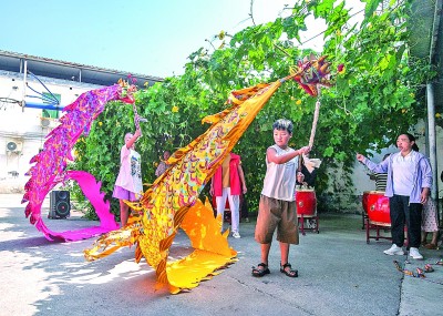 在河南博愛縣柏山鎮(zhèn)奉義社區(qū),小學(xué)生在縣級非遺傳承人的指導(dǎo)下學(xué)習(xí)舞彩帶龍。新華社發(fā)