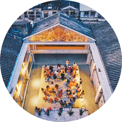 2015年,李繼津和合伙人看上了塘口舊墟兩處建筑,“原先是舊糧倉(cāng)周邊的五金廠、鐘表廠,雖然建筑很舊,但很有設(shè)計(jì)感,而且舊墟與周?chē)拇遄泳嚯x很近,有做社區(qū)改造的潛力?!闭f(shuō)干就干,舊工廠逐漸被改造為時(shí)尚的青年社區(qū)空間——“塘口空間”,餐廳、青年旅舍、劇場(chǎng)、活動(dòng)空間等一應(yīng)俱全,舊工廠里原有的一些制造機(jī)械作為歷史記憶的“載體”也被保留下來(lái)。“建筑不能脫離鄉(xiāng)村。”李繼津說(shuō)。