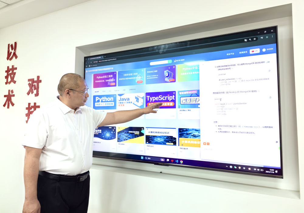 “我們?yōu)闉跗潉e克斯坦學(xué)員量身打造了數(shù)字技能應(yīng)用的‘虛擬課堂’,在這個智能教學(xué)平臺界面上輸入問題,人工智能會隨即回應(yīng)?!壁w洪宇展示著他們的產(chǎn)品。