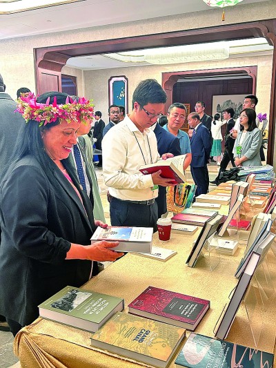 嘉賓在會(huì)場(chǎng)翻閱文史哲書籍。光明日?qǐng)?bào)記者 阮紫嫣攝/光明圖片