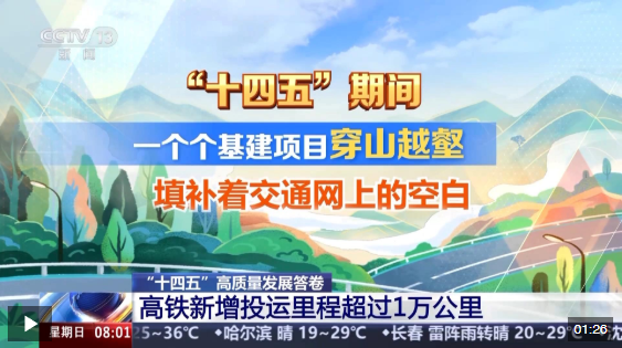 “十四五”時期,中國基建不斷跑出向新力和加速度,高鐵新增投運里程超過1萬公里,每10個行政村就有9個通上了5G。