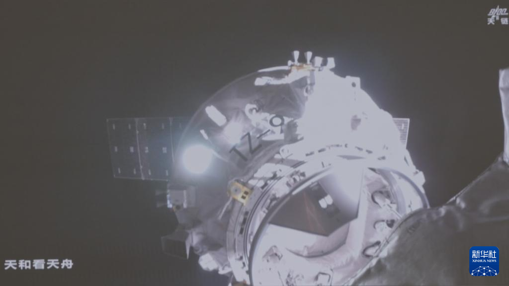 7月15日在北京航天飛行控制中心拍攝的天舟九號貨運(yùn)飛船向空間站組合體靠攏的畫面。新華社發(fā)(周柯毅 攝)