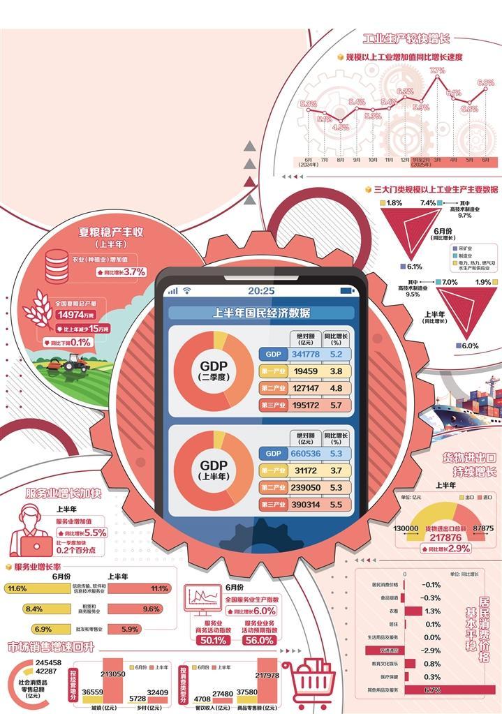 2025年上半年,中國經(jīng)濟頂壓克難,在復(fù)雜“路況”中穩(wěn)定前行,高質(zhì)量發(fā)展向新向好,展現(xiàn)出強大韌性和活力。