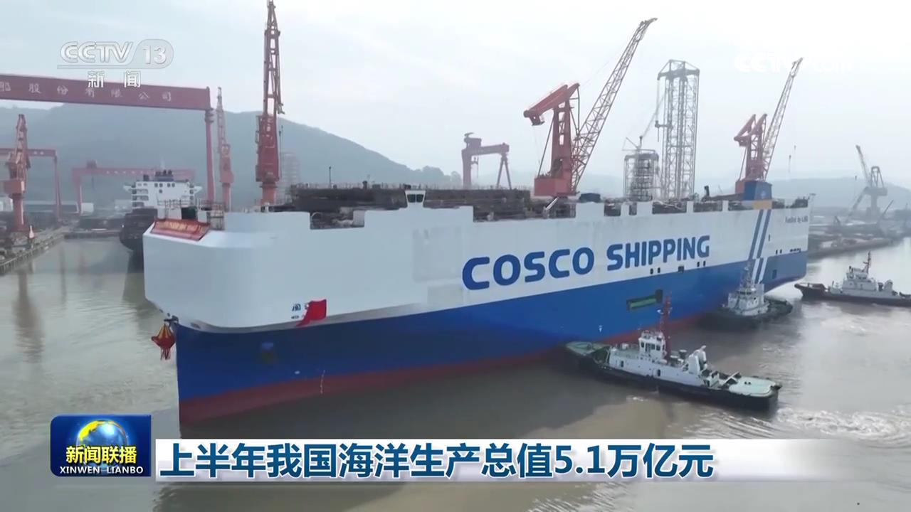 央視網(wǎng)消息(新聞聯(lián)播):記者從自然資源部了解到,上半年,我國(guó)海洋經(jīng)濟(jì)穩(wěn)中向好,初步核算,海洋生產(chǎn)總值5.1萬億元,同比增長(zhǎng)5.8%。