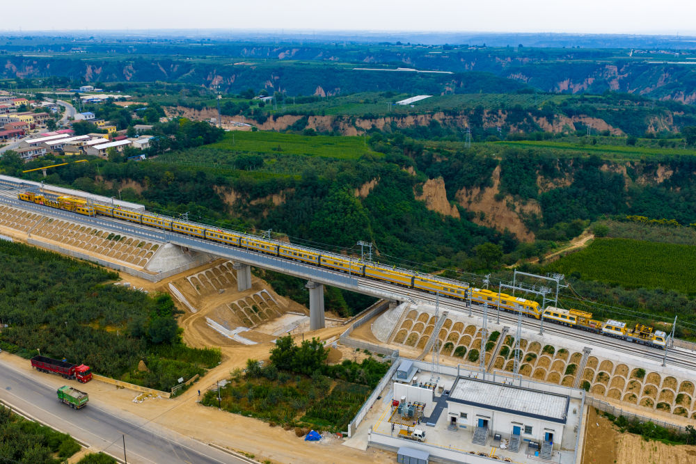 西延高鐵正在有序推進(jìn)電氣化設(shè)備的精調(diào)。(中國鐵路西安局集團(tuán)有限公司供圖)