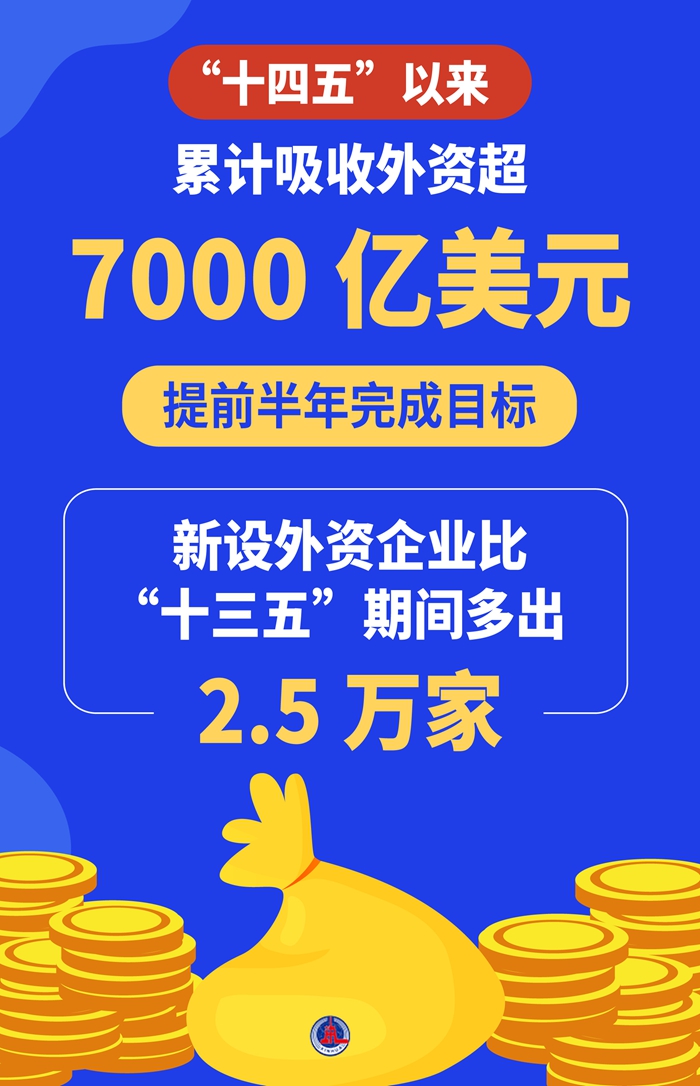復(fù)雜嚴峻的國際經(jīng)貿(mào)環(huán)境下,我國吸引外資交出亮眼答卷——“十四五”以來,累計吸收外資超7000億美元,提前半年完成目標,新設(shè)外資企業(yè)比“十三五”期間多出2.5萬家。