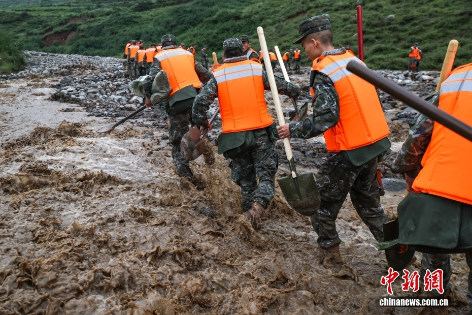 截至8日晚,武警甘肅總隊投入396名兵力開展道路清淤、人員搜救、搬運(yùn)物資等救援行動,共轉(zhuǎn)移群眾171人、搜救被困群眾5人、救治受傷群眾2人、清理危房6處、轉(zhuǎn)移受損車輛12輛,累計清理淤泥、山石700余方,搜索河道6公里、搶通道路2300米。圖為8月8日,武警甘肅總隊機(jī)動支隊官兵挺進(jìn)災(zāi)區(qū)甘肅省蘭州市榆中縣馬坡鄉(xiāng)舊莊溝村展開救援。劉昆 攝