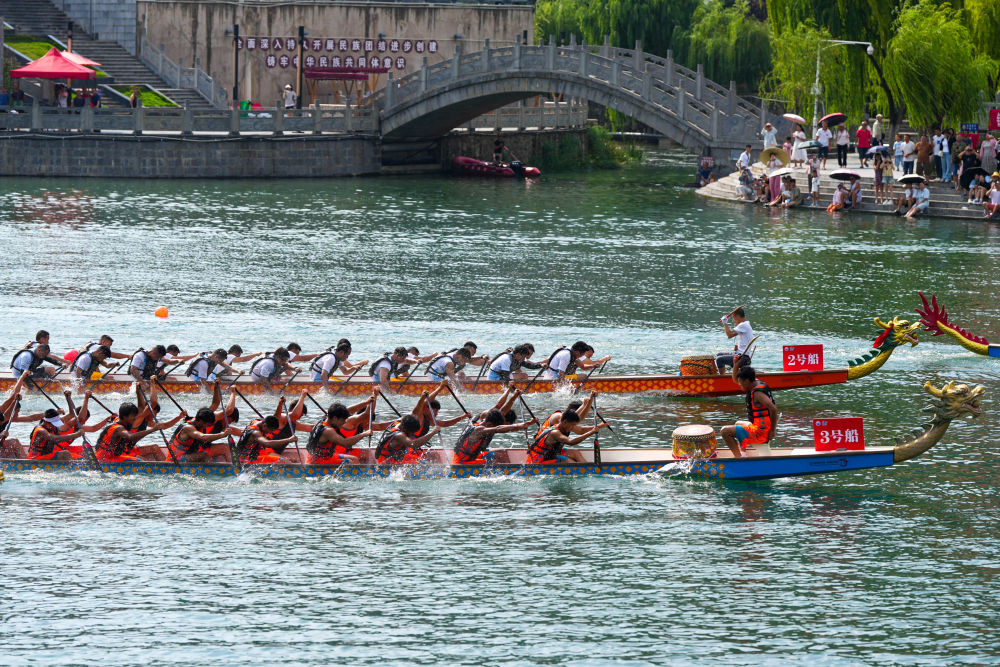 7月19日,龍舟隊伍在鎮(zhèn)遠(yuǎn)縣?陽河上比賽。新華社發(fā)(龍建睿攝)
