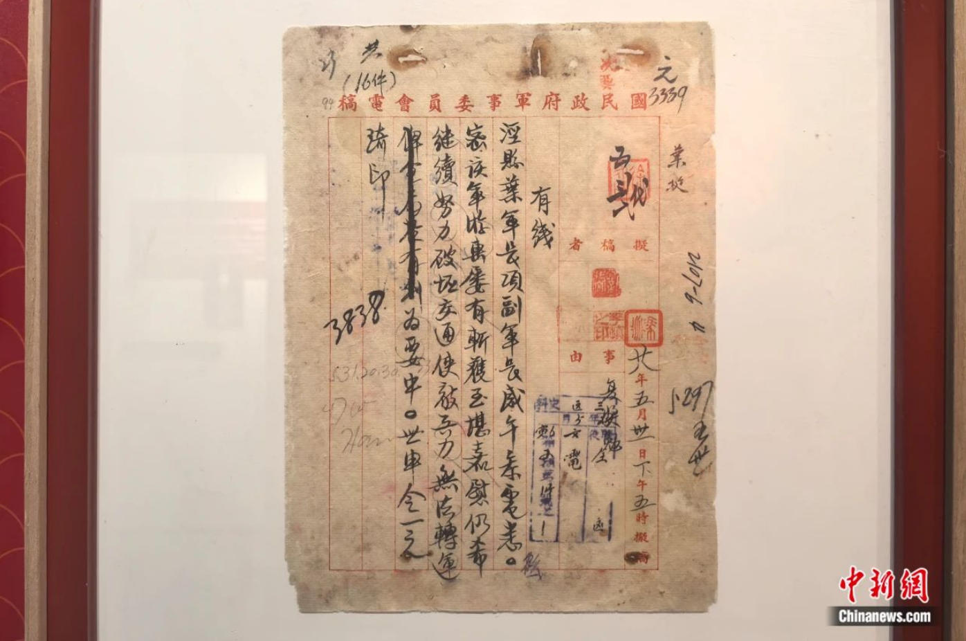 蔣介石第一次給葉挺軍長(zhǎng)、項(xiàng)英副軍長(zhǎng)的嘉獎(jiǎng)令。張強(qiáng) 攝