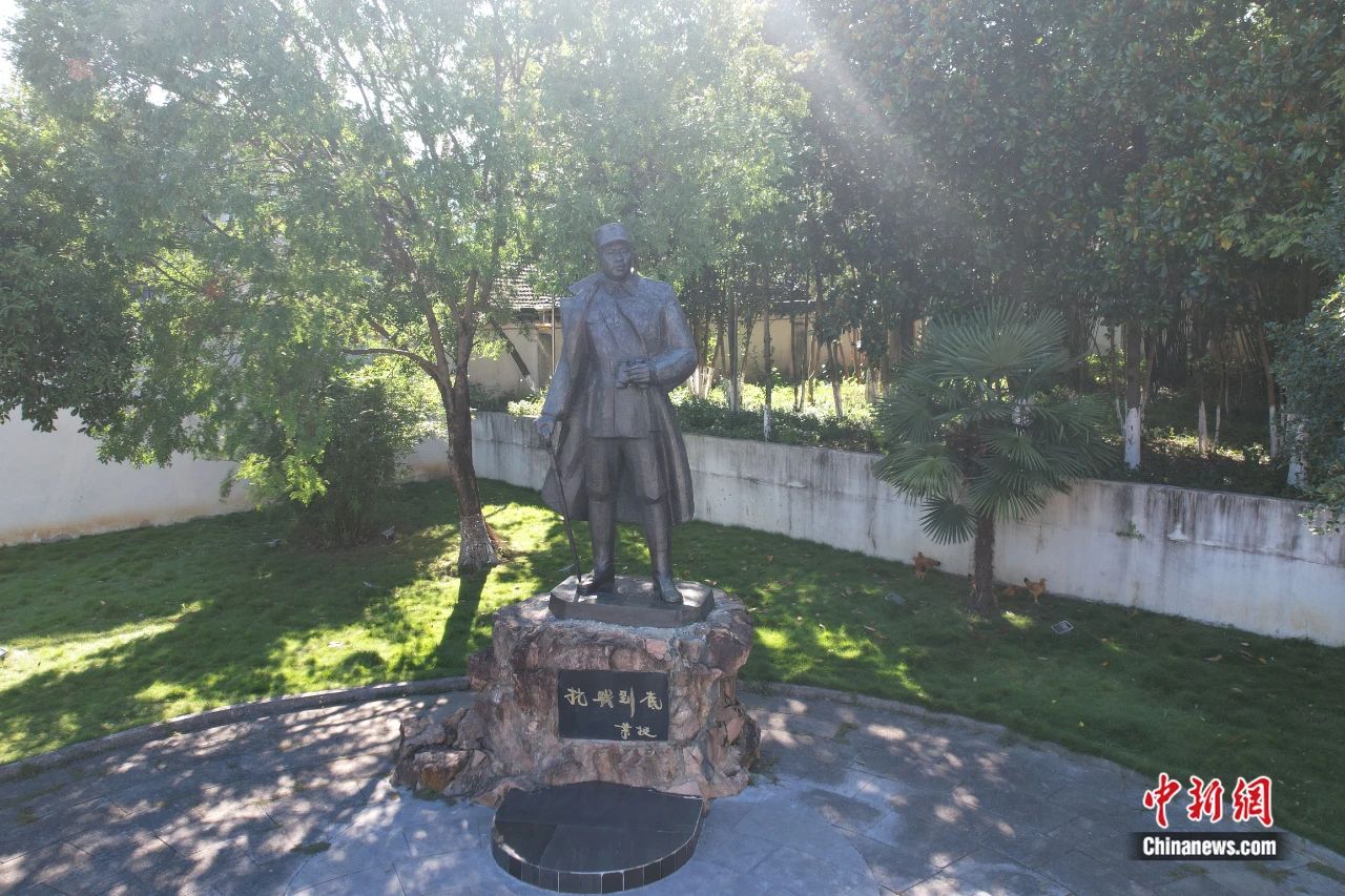 坐落在安徽涇縣云嶺鎮(zhèn)新四軍軍部舊址前的葉挺雕像。(無(wú)人機(jī)照片)張強(qiáng) 攝