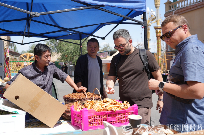8月22日,研修班一行在哈密阿勒屯古街購(gòu)買(mǎi)哈密瓜干。仲銀堂攝
