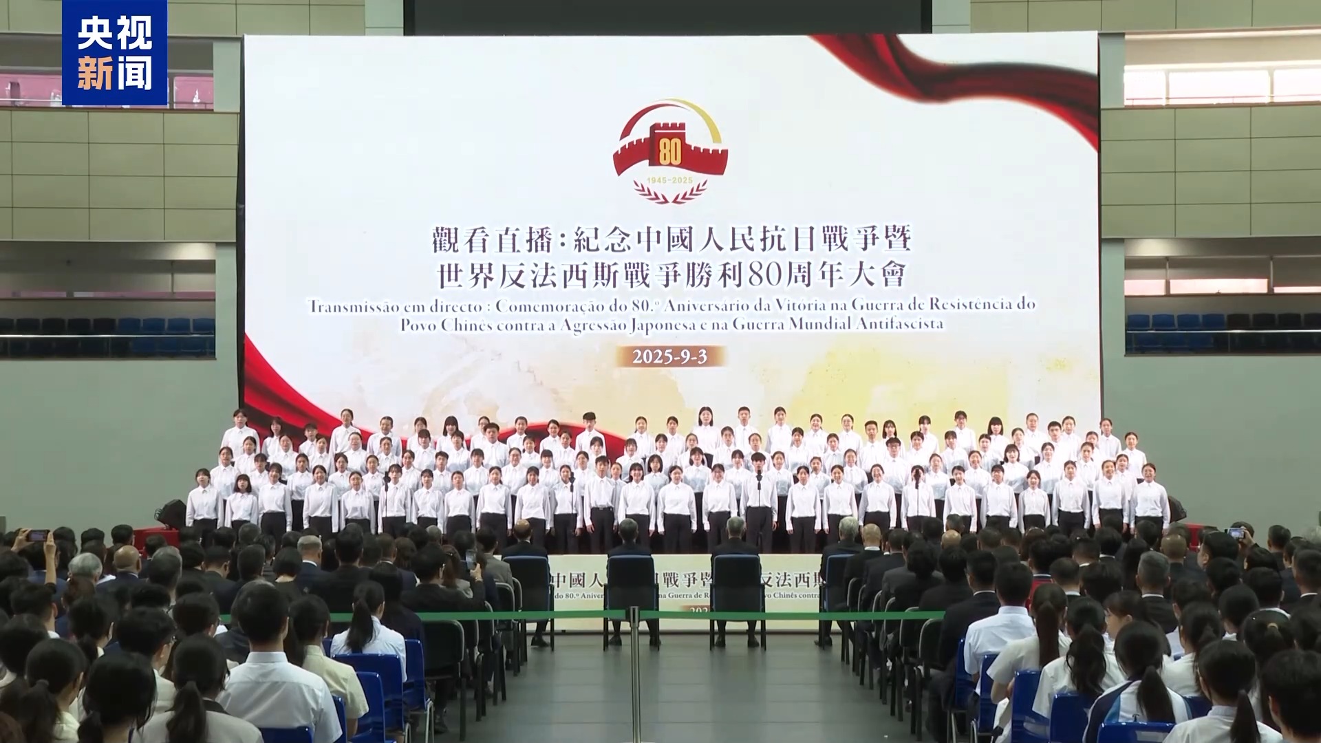 9月3日上午8時,香港特區(qū)政府在香港大會堂紀念花園舉行官方儀式,紀念中國人民抗日戰(zhàn)爭暨世界反法西斯戰(zhàn)爭勝利80周年。澳門特區(qū)政府于9月3日上午,在澳門理工大學和澳門大學同步舉行儀式,組織特區(qū)政府官員、社團、青年和學生代表等社會各界人士共同觀看紀念中國人民抗日戰(zhàn)爭暨世界反法西斯戰(zhàn)爭勝利80周年大會的直播。