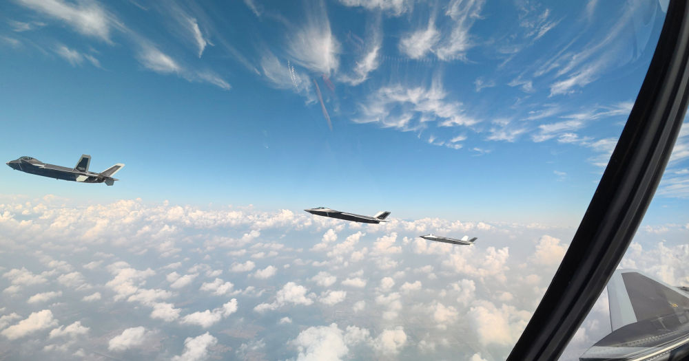 ↑這是殲擊機(jī)梯隊(duì)從北京城區(qū)上空飛過(guò)。