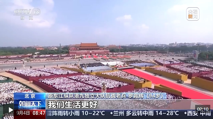 9月3日一大早,各地不少老兵們都佩戴上軍功章,收看這場致敬歷史、禮贊強盛的盛典。