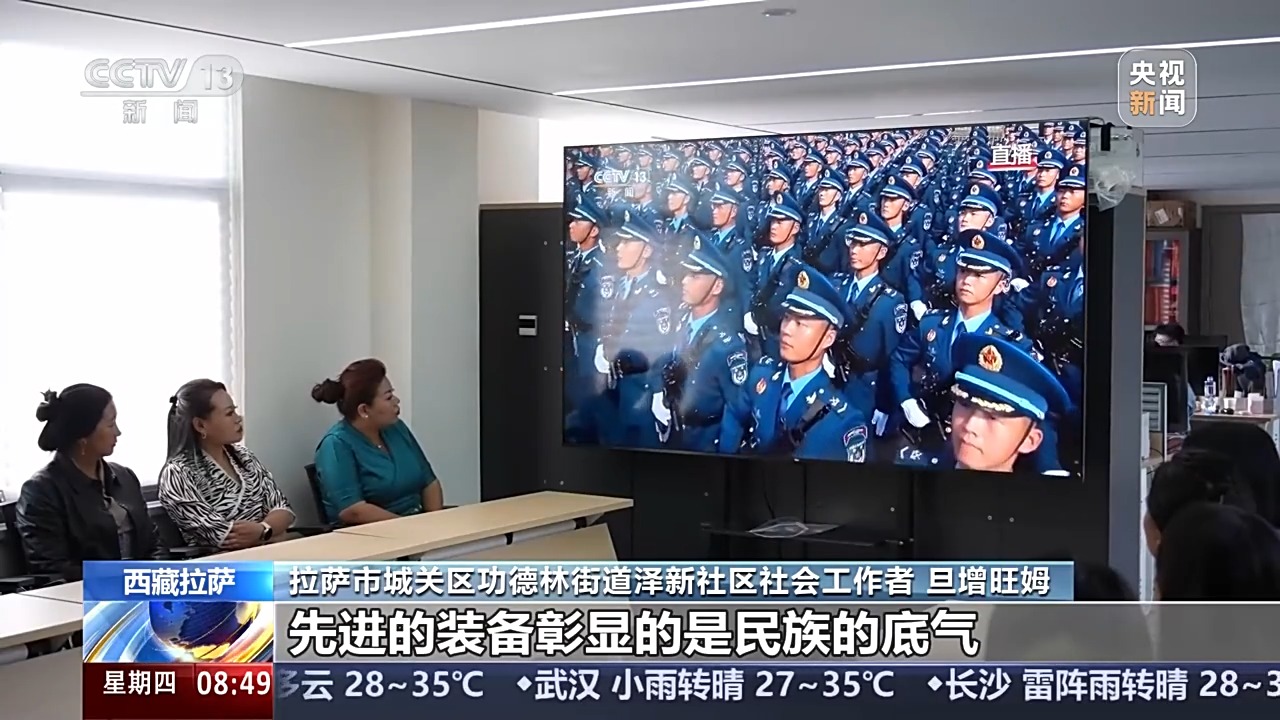 拉薩市城關區(qū)功德林街道澤新社區(qū)社會工作者 旦增旺姆:整齊的步伐踏出的是國家的力量,先進的裝備彰顯的是民族的底氣,更讓我深刻感受到,強盛的祖國永遠是我們最堅實的依靠。