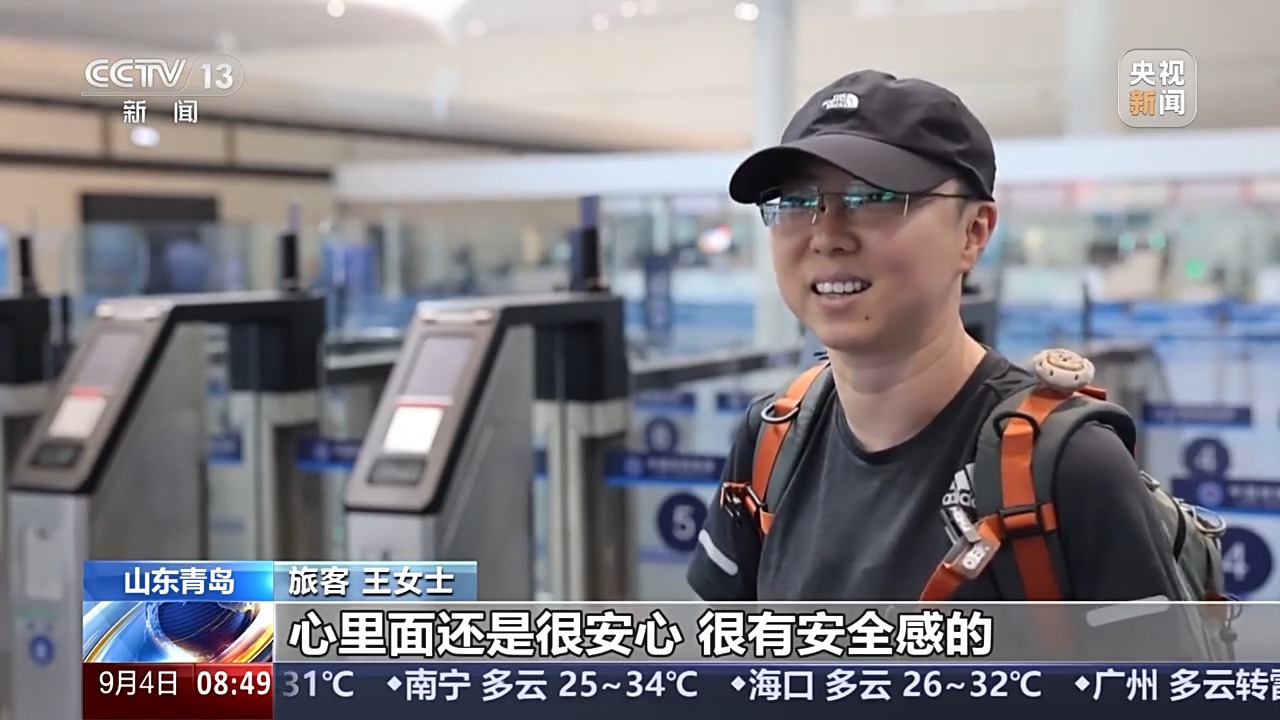旅客 王女士:就覺得身后有一個強大的國家做支撐,心里面還是很安心、很有安全感的。