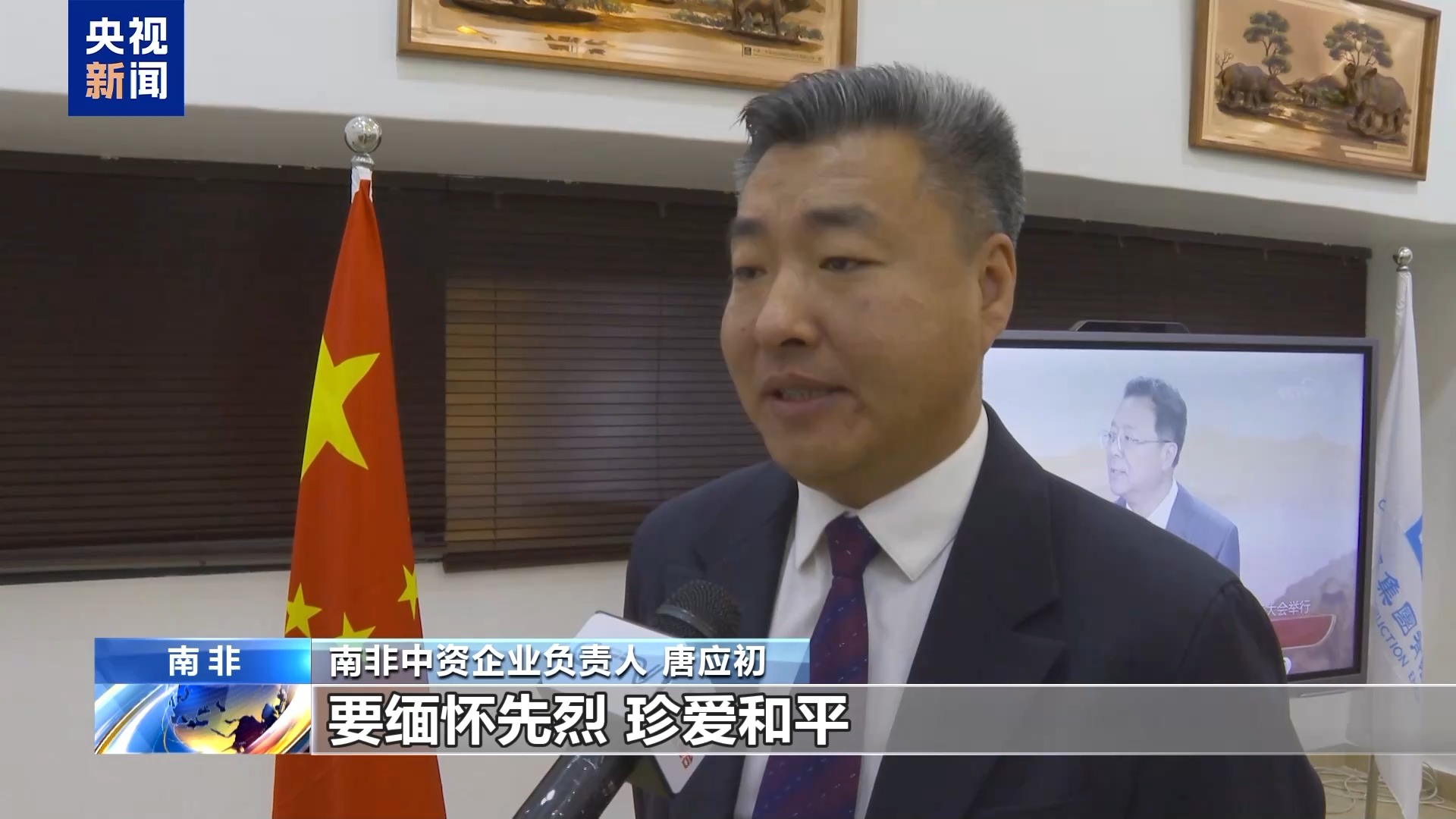 南非中資企業(yè)負(fù)責(zé)人 唐應(yīng)初:歷史告訴我們要緬懷先烈、珍愛(ài)和平。只有團(tuán)結(jié)才能勝利,只有合作才能共贏。作為海外建設(shè)者,今天我們胸懷祖國(guó),奮戰(zhàn)一線。用實(shí)際行動(dòng)證明,中國(guó)建設(shè)者攻堅(jiān)克難、敢打必勝。