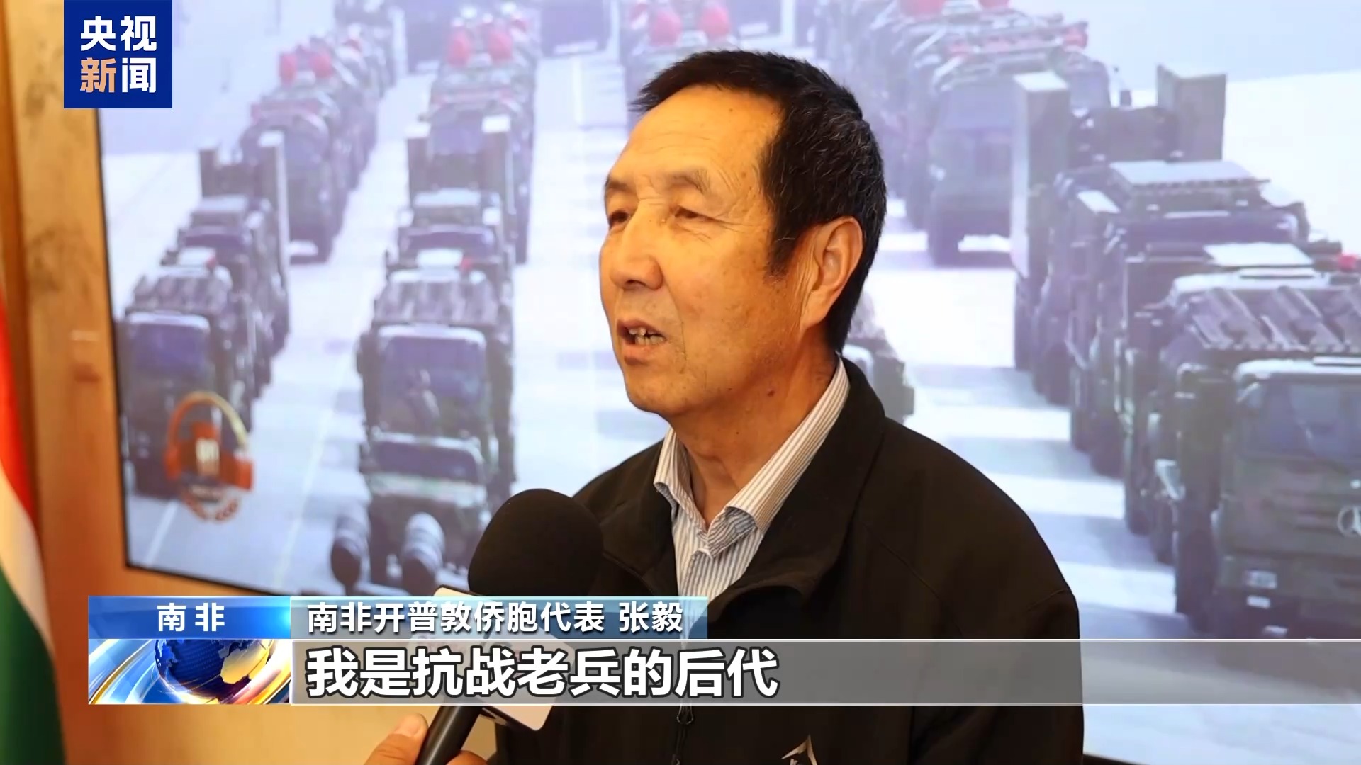 南非開(kāi)普敦僑胞代表 張毅:我是抗戰(zhàn)老兵的后代,我父親1941年在冀中平原加入八路軍,曾參與多場(chǎng)戰(zhàn)斗。作為未經(jīng)歷戰(zhàn)爭(zhēng)的新一代,我們一定要繼承老一代革命先烈的精神,發(fā)揚(yáng)他們的必勝信念,為世界和平貢獻(xiàn)力量。