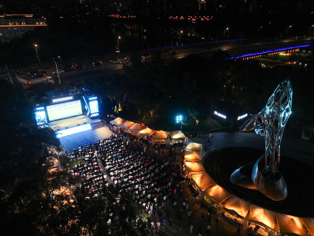 8月17日,在江蘇南京舉行的2025江蘇省城市足球聯(lián)賽第九輪比賽中,南京隊(duì)對(duì)陣鹽城隊(duì)。南京市在部分商場、街區(qū)等地設(shè)置觀賽“第二現(xiàn)場”,使用大屏幕同步直播賽事,同時(shí)設(shè)有游戲互動(dòng)區(qū)、煙火市集區(qū),讓球迷們度過歡樂時(shí)光。新華社記者 季春鵬 攝
