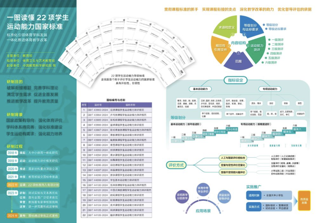 去年5月,由中國教育科學研究院牽頭研制的22項《規(guī)范》發(fā)布,為中國學生運動能力等級提供了國家標準。這意味著長期困擾學校的運動能力評價無標準、課程缺乏銜接性問題,有望通過國家標準得以破解。