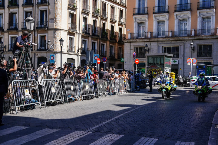 兩天里,圣克魯斯宮外,近百名媒體記者從早到晚盯守著會場的一舉一動,吸引當(dāng)?shù)鼐用?、各國游客駐足觀望。