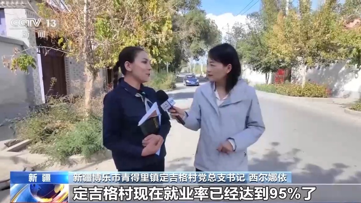 新疆博樂市青得里鎮(zhèn)定吉格村黨總支書記 西爾娜依:定吉格村現(xiàn)在就業(yè)率已經達到95%了,相當于每個人都有活干,每個人都有錢掙。