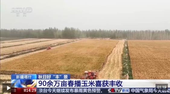 秋風(fēng)送爽,豐收忙。在新疆喀什地區(qū),90多萬畝春播玉米進入集中收獲期。當(dāng)?shù)赝ㄟ^良種推廣、科技賦能和政策扶持,實現(xiàn)玉米提單產(chǎn)、增效益,讓農(nóng)戶“糧袋子”更鼓、“錢袋子”更實。