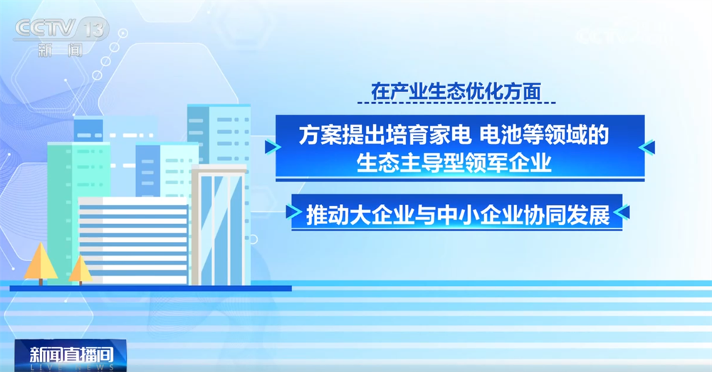 在產(chǎn)業(yè)生態(tài)優(yōu)化方面,方案提出培育家電、電池等領(lǐng)域的生態(tài)主導(dǎo)型領(lǐng)軍企業(yè),推動(dòng)大企業(yè)與中小企業(yè)協(xié)同發(fā)展;分批打造輕工業(yè)特色產(chǎn)區(qū),引導(dǎo)企業(yè)向中西部轉(zhuǎn)移,淘汰落后產(chǎn)能;通過產(chǎn)融合作、知識產(chǎn)權(quán)質(zhì)押貸款等方式,培育世界一流企業(yè)和專精特新“小巨人”企業(yè)。