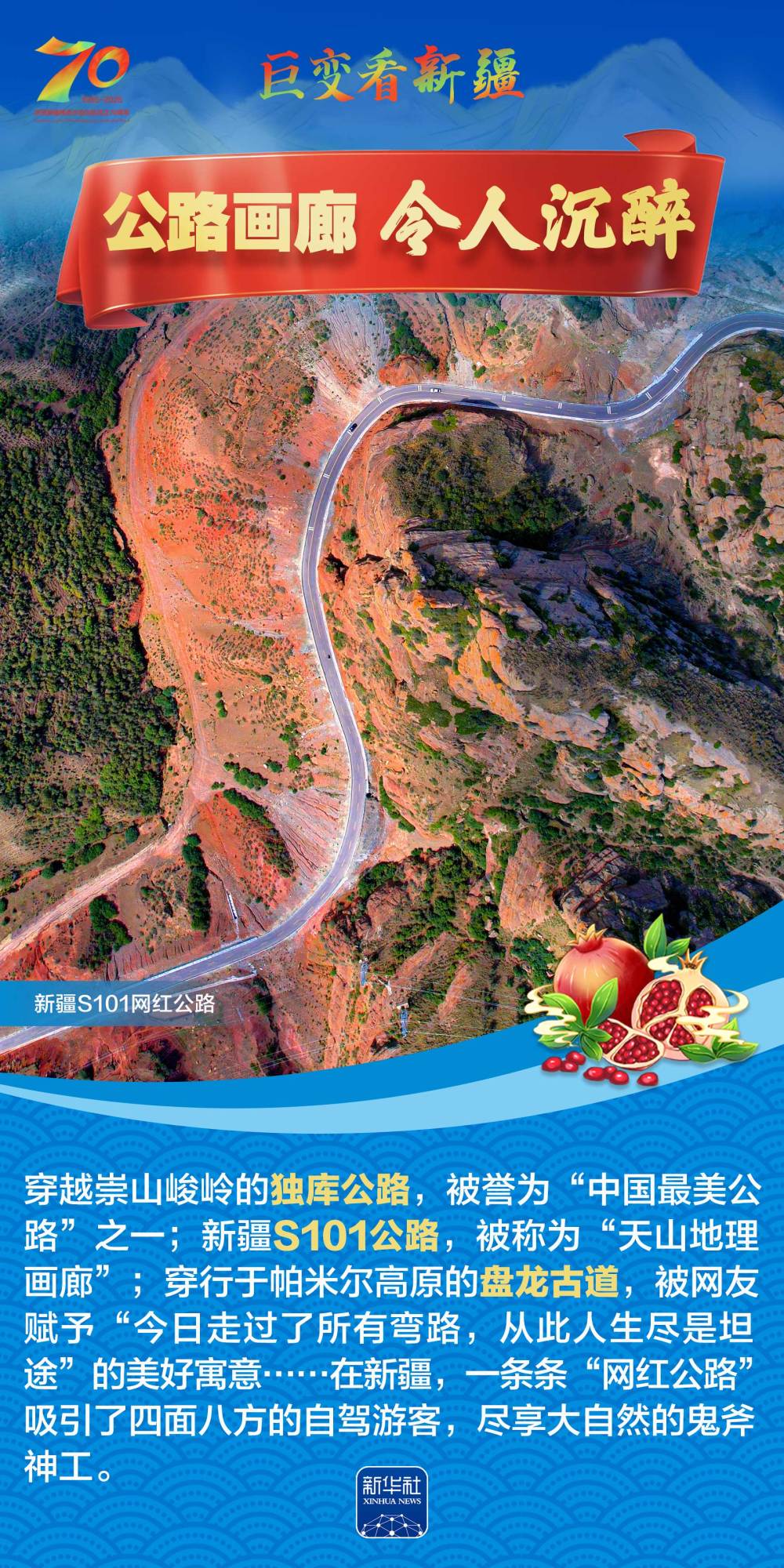 今年是新疆維吾爾自治區(qū)成立70周年。70年來,新疆的交通建設日新月異。從駝鈴聲聲、馬蹄嘚嘚到鐵流縱橫、銀鷹高翔,一座座交通樞紐輻射四方,一條條“鋼鐵巨龍”蜿蜒逶迤,一個個支線機場星羅棋布,現(xiàn)代化的新疆立體交通網(wǎng)絡日益形成。讓我們跟隨這組海報,一起見證穿越“三山兩盆”、貫通歐亞大陸的新時代新疆交通畫卷。