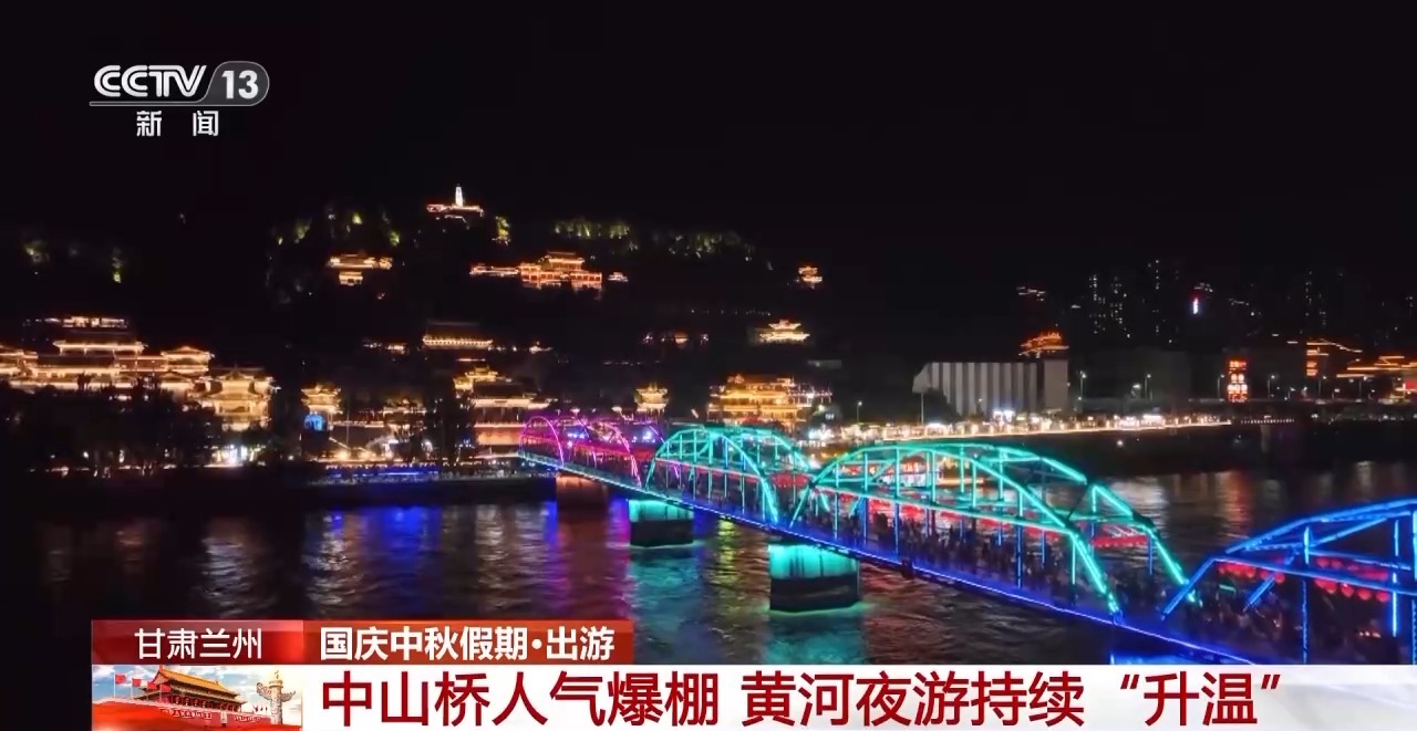 這兩天,甘肅蘭州百年鐵橋披上七彩霓裳。游客們或漫步橋上,感受晚風(fēng)與燈光交融的浪漫,或登上“夜游黃河”游船,沿航線欣賞兩岸都市夜景,在古今交織中體驗蘭州新活力。在金城關(guān)景區(qū),璀璨的燈光與奔流的黃河共繪節(jié)日里的靚麗畫卷。游客們品嘗著當(dāng)?shù)靥厣〕?,在文?chuàng)攤位前選購黃河主題冰箱貼、書簽等商品,感受假日愜意時光。