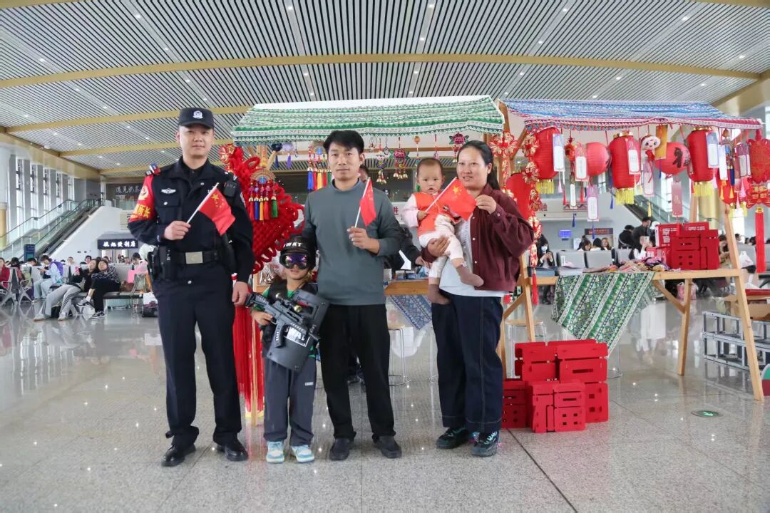 候車大廳內(nèi),紅色的國旗與中秋元素裝飾隨處可見。志愿者向旅客熱情遞上文旅宣傳冊,介紹紅河州特色景點(diǎn)與動(dòng)車出行攻略。精彩的民族歌舞表演吸引了旅客紛紛駐足,他們舉起手機(jī)記錄下精彩瞬間。