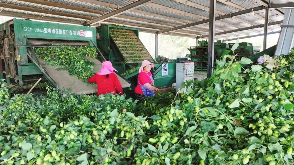 金秋時(shí)節(jié),新疆生產(chǎn)建設(shè)兵團(tuán)第八師石河子市142團(tuán)種植的6000畝啤酒花喜獲豐收,鮮花畝產(chǎn)量近1000公斤,烘干后干花達(dá)250公斤,每畝純收益約1500元。