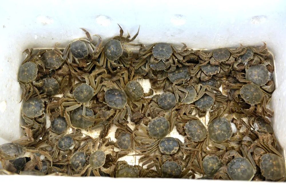據(jù)介紹,遼寧毛蟹肉質(zhì)鮮嫩細(xì)膩,喜低溫環(huán)境,夏季生長(zhǎng)較慢,至7月僅30克-40克,進(jìn)入秋季后迅速增重至150克。判斷螃蟹是否成熟,可觀察其腿部:腿長(zhǎng)且硬實(shí)即表示已長(zhǎng)成。