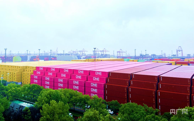 南京港龍?zhí)都b箱碼頭(央廣網(wǎng)記者 欒永勝 攝)