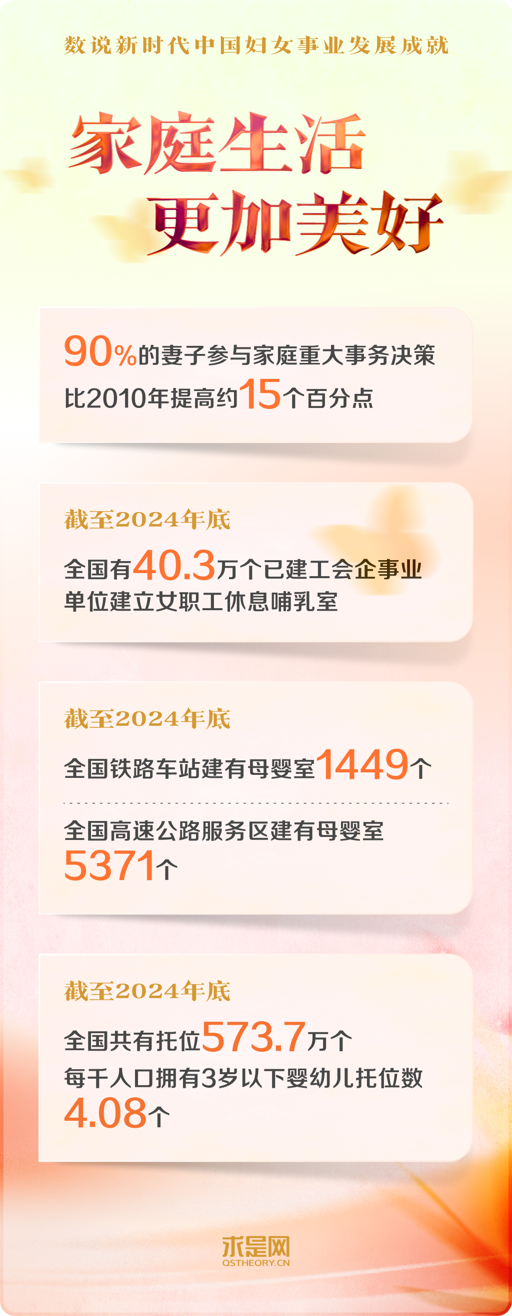 黨的十八大以來,以習(xí)近平同志為核心的黨中央把保障婦女合法權(quán)益、促進(jìn)男女平等和婦女全面發(fā)展,作為中國式現(xiàn)代化的重要內(nèi)容,對婦女事業(yè)發(fā)展作出一系列開創(chuàng)性、全局性、長遠(yuǎn)性的重大決策部署。中國在幼有所育、學(xué)有所教、勞有所得、病有所醫(yī)、老有所養(yǎng)、住有所居、弱有所扶上持續(xù)用力,不斷實現(xiàn)廣大婦女對美好生活的向往。一組組數(shù)字,記錄下新時代中國婦女事業(yè)跨越式發(fā)展的重大成就。