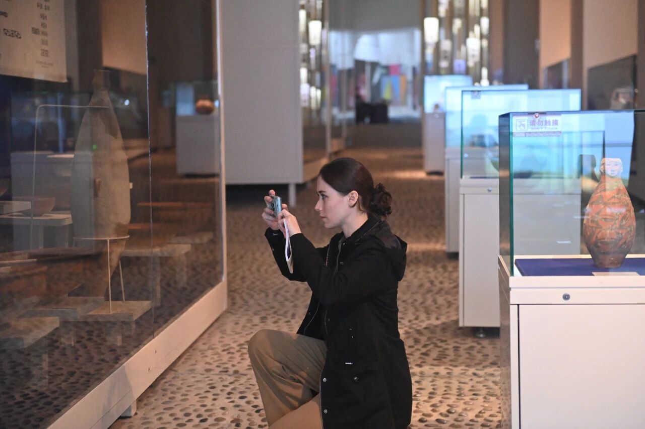 2024年10月22日,2024青年漢學家研修計劃甘肅班團隊22個國家的青年漢學家,走進甘肅省天水市秦安縣大地灣遺址參觀并進行專題研修。中新社記者 李亞龍 攝