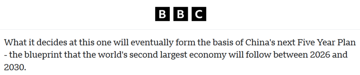 10月20日至23日,黨的二十屆四中全會在北京舉行。對此,英國廣播公司(BBC)19日報道認為,“此次會議所作的決定最終將成為中國下一個五年規(guī)劃的基礎,而這一規(guī)劃將指引世界第二大經(jīng)濟體在2026年至2030年期間的發(fā)展方向”。