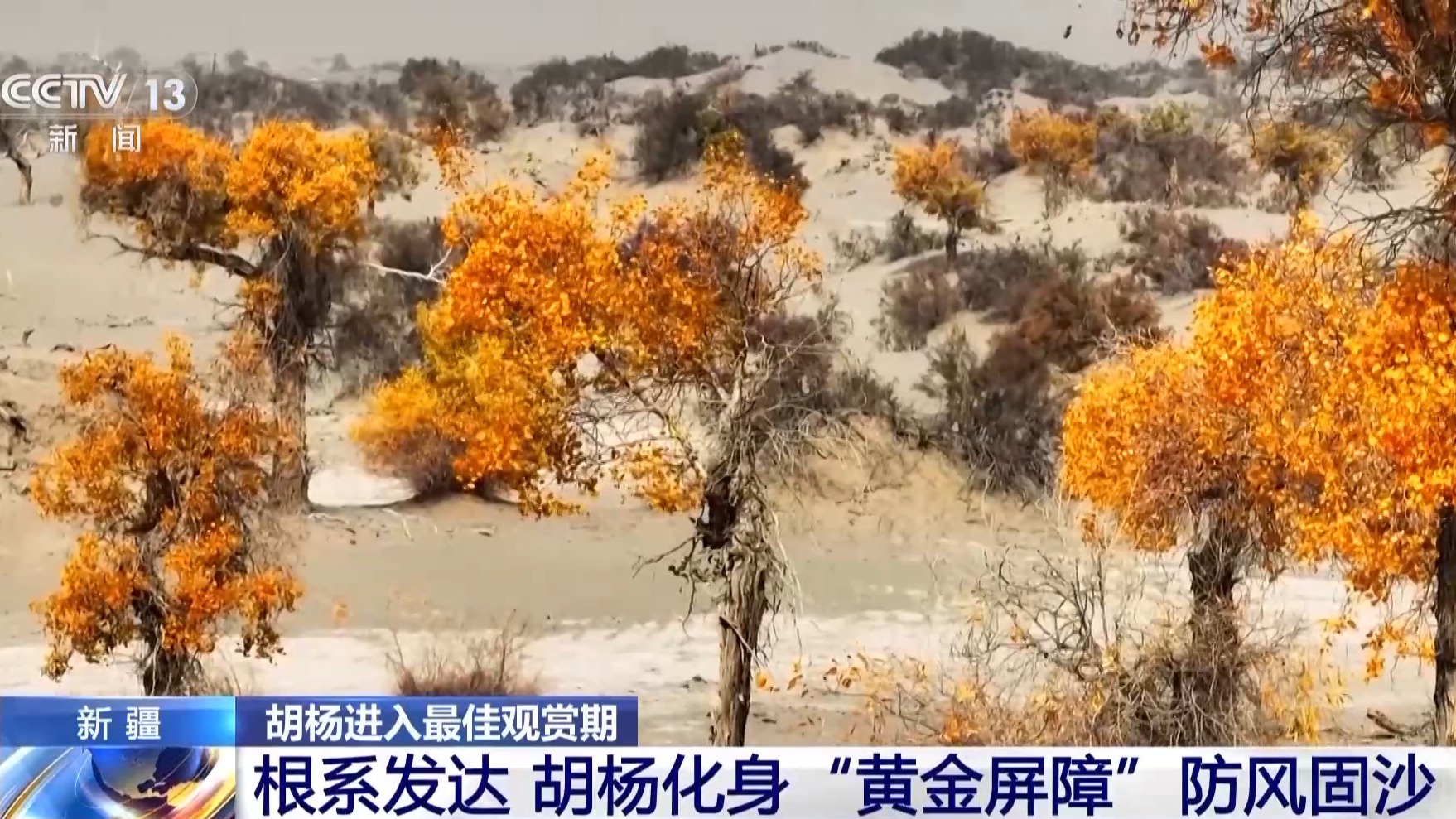 胡楊,被稱為“沙漠英雄樹”。它們耐旱、耐鹽堿、抗風沙,發(fā)達的根系深扎地下數(shù)十米,既能鎖住沙丘,又能涵養(yǎng)水源、調(diào)節(jié)氣候。我國胡楊林面積約占全球的61%,大部分分布在新疆塔里木河流域。眼下,新疆各地胡楊進入最佳觀賞季。