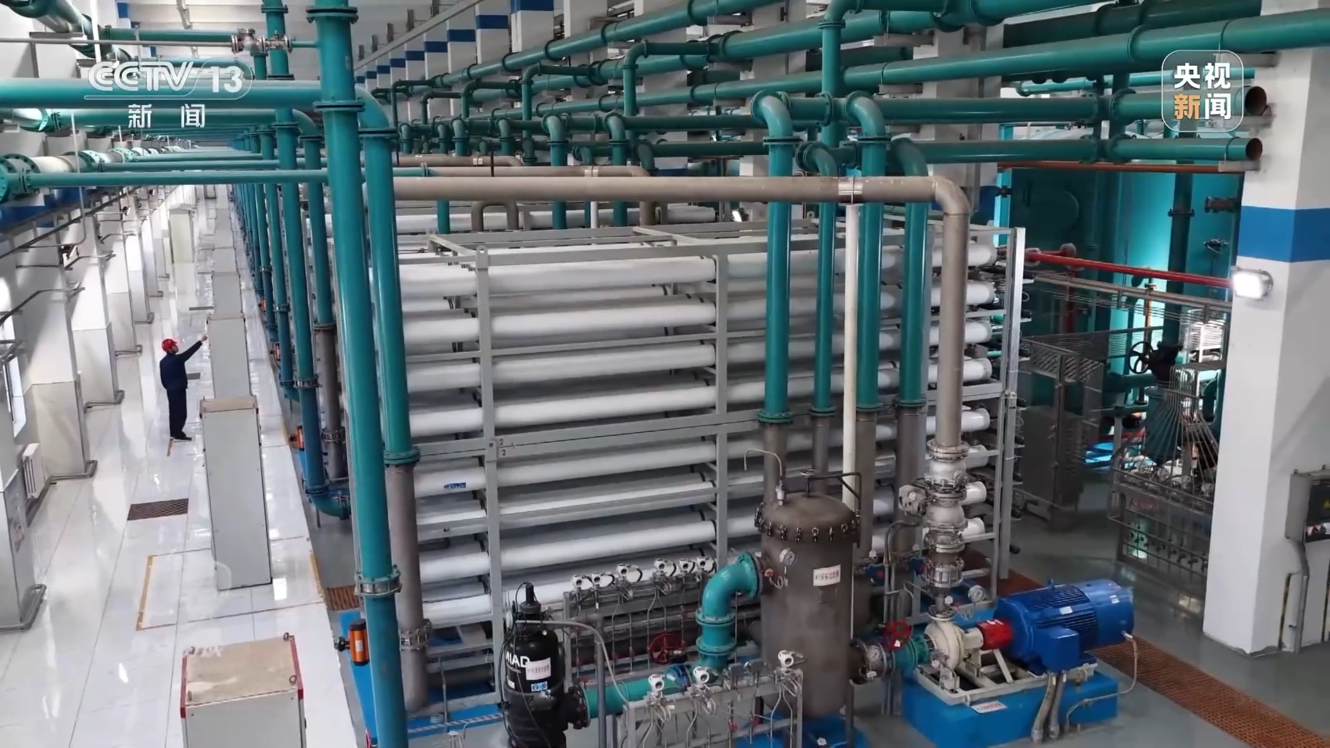 在依海而建的天津南港工業(yè)區(qū)內,有著目前全國單機規(guī)模最大的反滲透海水淡化和綜合利用一體化項目。5條生產線,日產量達15萬噸,可以滿足68萬城鎮(zhèn)居民的單日用水量,全年可替代、節(jié)約淡水資源超過5000萬噸。
