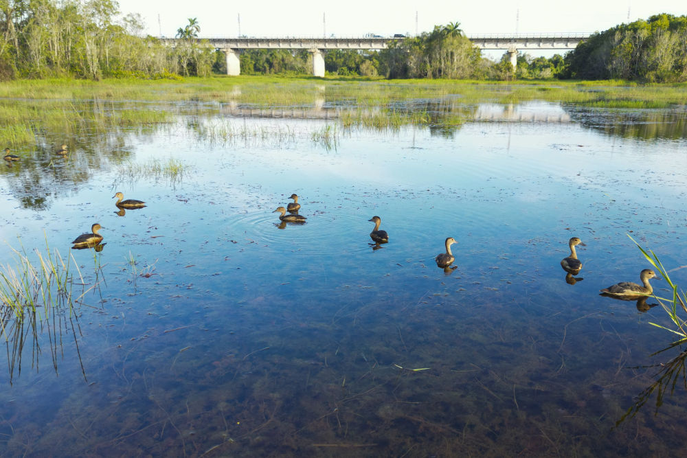 ↑這是10月10日在馬來西亞彭亨州馬東鐵項目附近拍攝的幾只野鴨(無人機照片)。