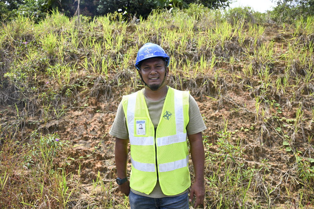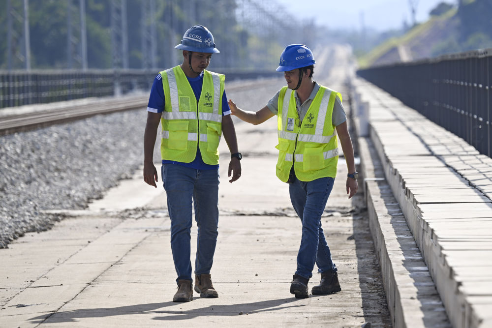 ↑10月10日,在馬來西亞彭亨州馬東鐵項目,環(huán)境官穆罕默德·斯亞哈丹·本·伊斯梅爾(左)和安全官何健耀聯(lián)合巡查