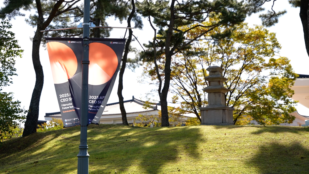 時值亞太經(jīng)合組織第三十二次領(lǐng)導(dǎo)人非正式會議,印有APEC標識的條幅在慶州隨處可見。