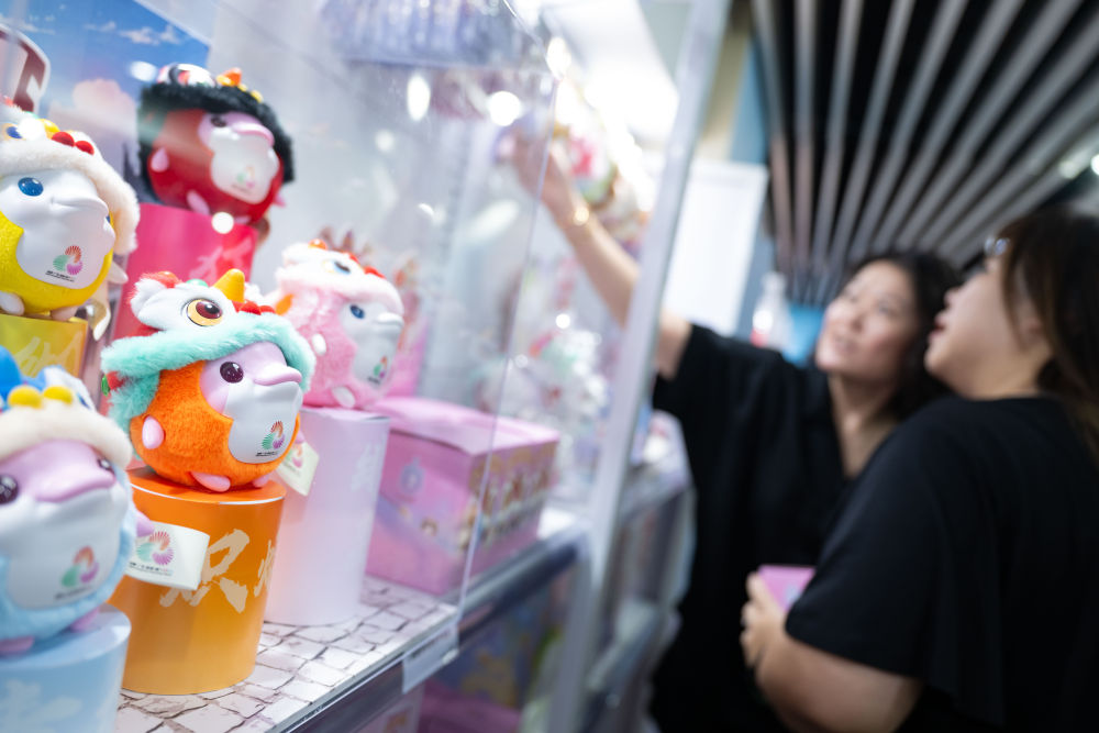 8月1日,市民在十五運(yùn)會和殘?zhí)貖W會澳門賽區(qū)官方特許商品零售店選購。新華社發(fā)(張金加攝)