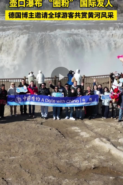 時(shí)值“彩虹飛瀑”觀賞期,黃河水裹挾黃土高原泥沙奔涌而來,金色濤浪撞擊巖石激起漫天水霧,正午陽光穿透水霧形成絢麗彩虹,引得采訪團(tuán)紛紛駐足拍攝。來自德國的自媒體博主托比在參觀后贊嘆:“希望全球的朋友們都來這里觀光!”