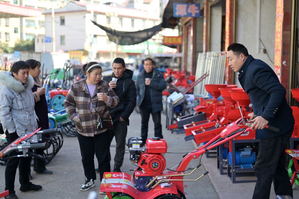 2025年2月9日,在湖南省婁底市雙峰縣農機市場,農戶在選購小農機。新華社發(fā)(李建新 攝)