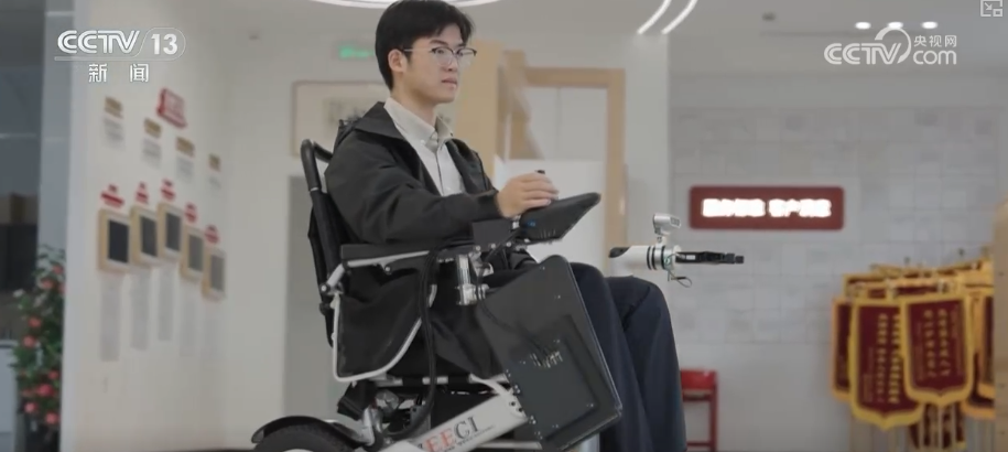 在杭州西湖區(qū),工作人員正在對(duì)眼前這款智能輪椅進(jìn)行技術(shù)升級(jí)。結(jié)合失能老人手腳行動(dòng)不便的痛點(diǎn),這款輪椅搭載了深度相機(jī)和智能機(jī)械臂,通過內(nèi)置的AI算法,使用者只需和平常一樣坐在上面,簡(jiǎn)單用語(yǔ)言表達(dá)需求,輪椅就可以判斷路線,智能移動(dòng)。
